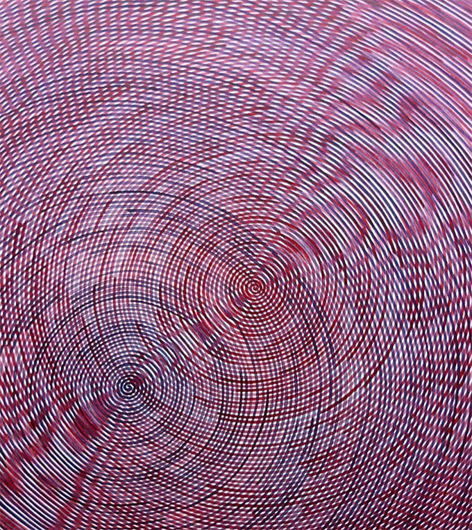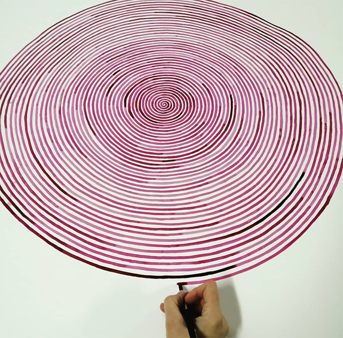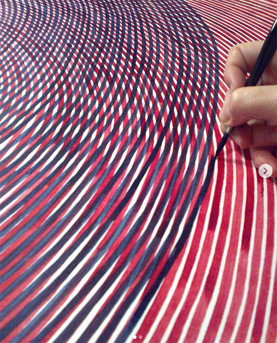 Le nombre de lignes, non. L’espace est important : pour rester parallèle et régulier, il faut que ce soit toujours le même. Mais ce qui compte le plus, ce qui est réellement là, c’est la ligne en elle-même. Et l’épaisseur de la ligne correspond à la taille du pinceau.