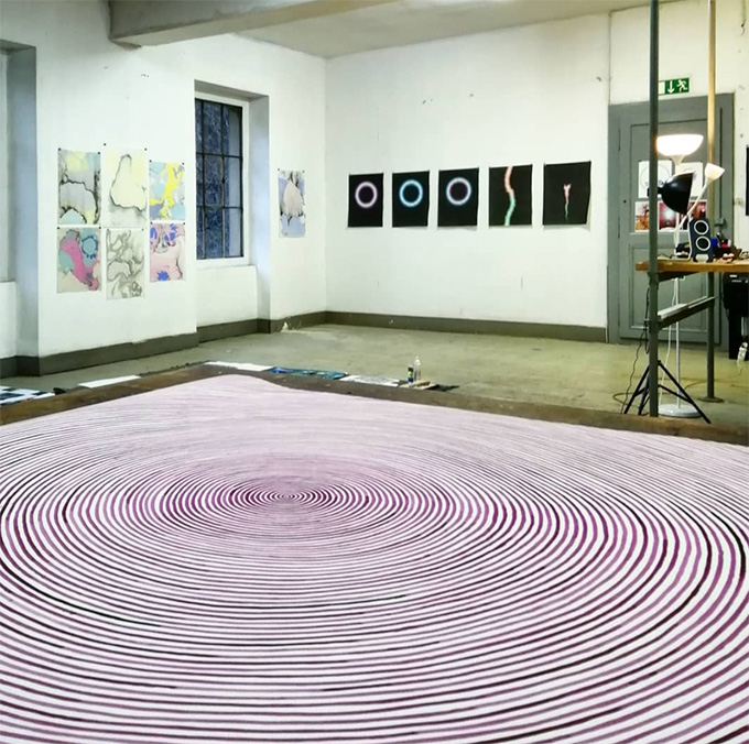 Je ne pense pas qu’il y ait du son qui en émane, mais il y a un certain rapport au son parce que ces ondes nous font penser à une sonorité, tout comme la description du son de la grenouille de Bashô nous suggère une image. Deux autres spirales ont été reproduites sur la pochette du dernier disque de Dollar Mambo, aka Stephan Perrinjaquet, mon mari, d’ailleurs intitulé