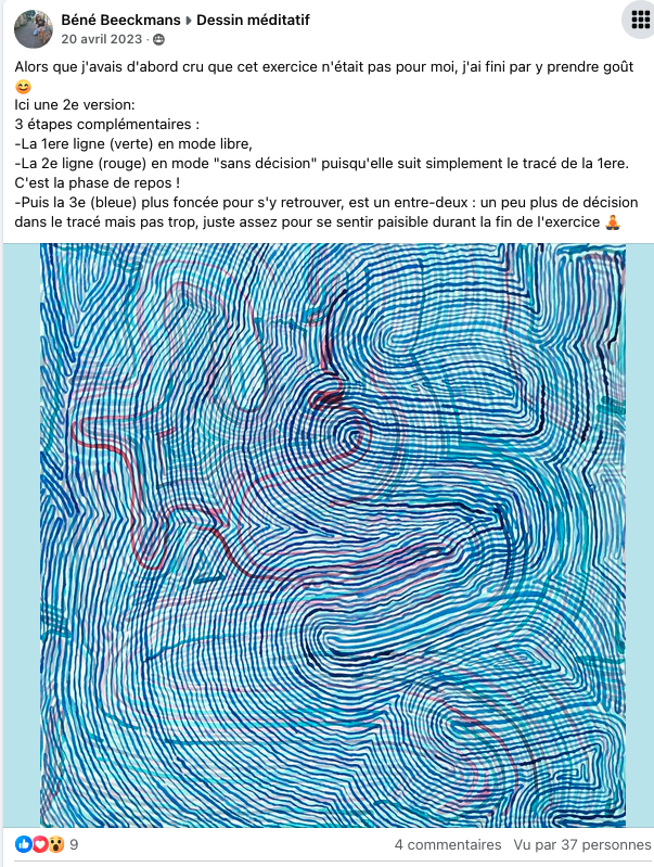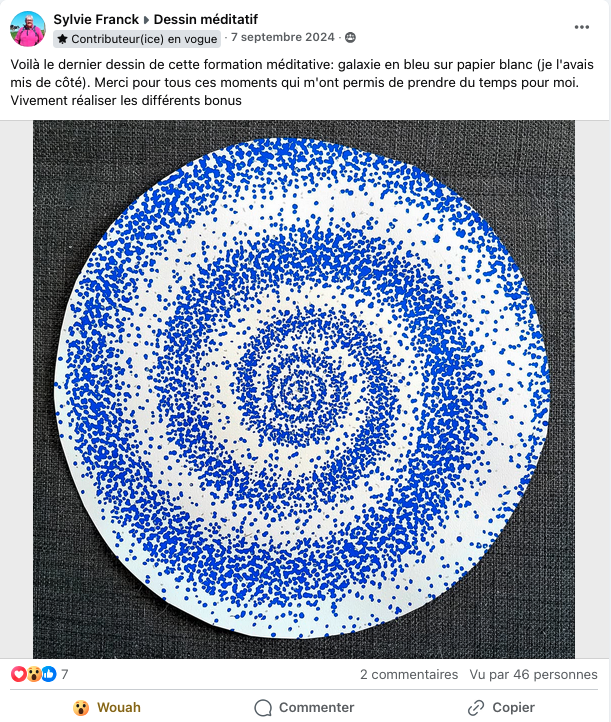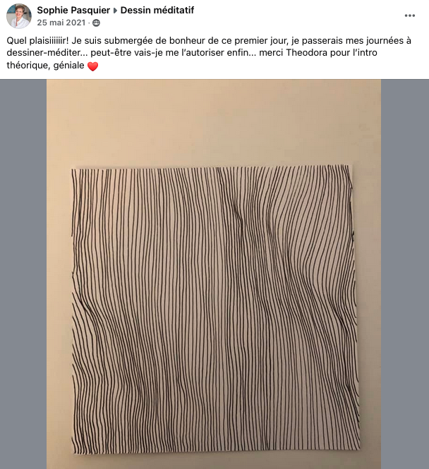 J'ai peut-être respiré de façon plus réfléchie, plus posée, encore plus calme... Je trouve ta formation fantastique, j'avais hésité à la prendre en me disant que ça allait être redondant avec la méthode zentangle, mais pas du tout, la finalité n'est pas la même malgré tout et je n'ai aucun regret à l'avoir prise.