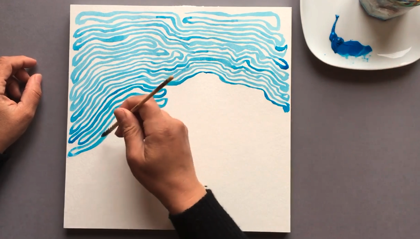 L’ondulation est une ligne faite de haut en bas et de bas en haut. Utilisée pour illustrer nos ressentis intérieurs et les calmer par la répétition du mouvement.